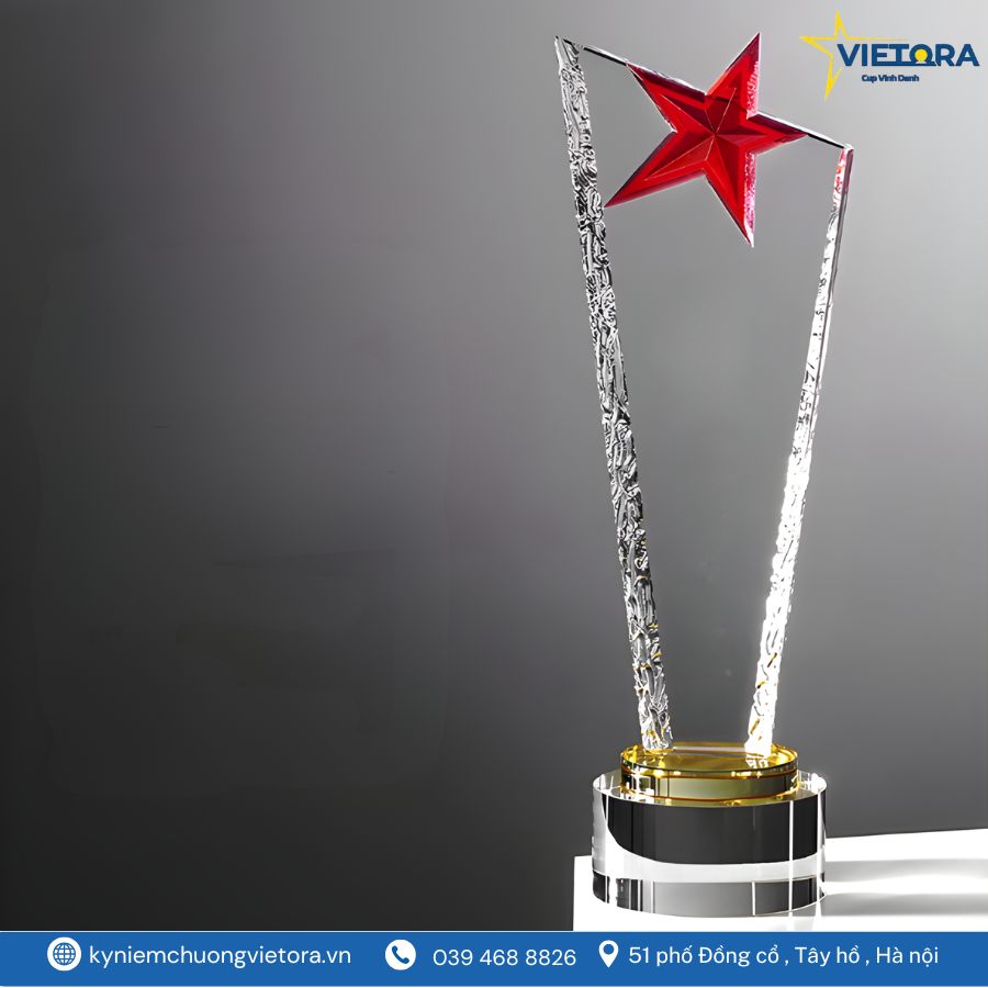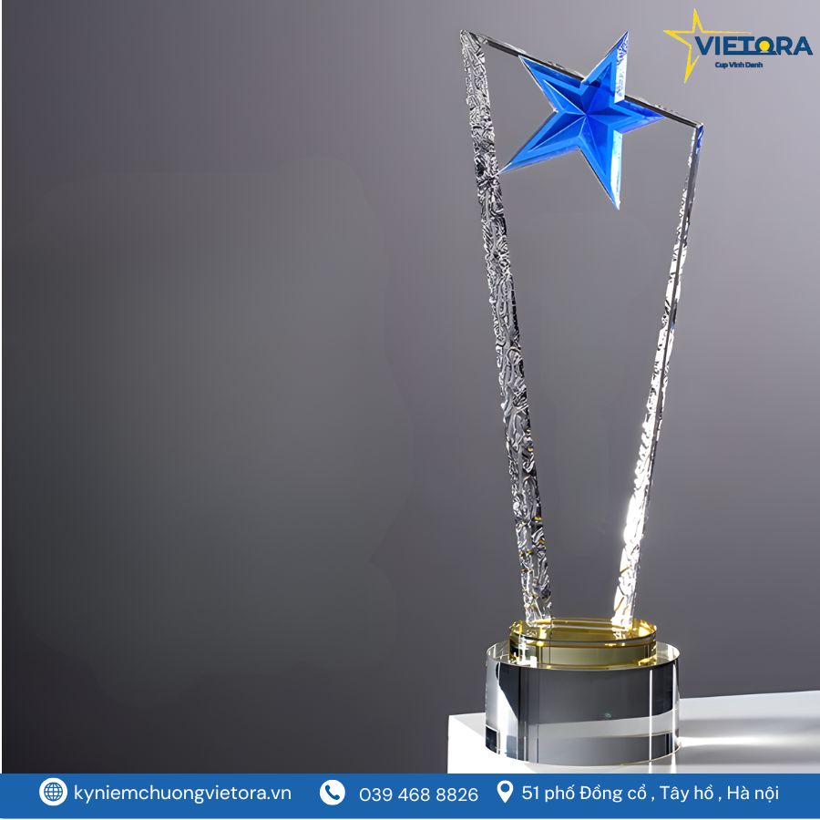 Kỷ niệm chương ngôi sao pha lê là lựa chọn hoàn hảo cho những sự kiện vinh danh mang ý nghĩa tôn vinh, tri ân và ghi nhận thành tựu. Với thiết kế tinh tế cùng biểu tượng ngôi sao tỏa sáng, chiếc cúp pha lê Vietora không chỉ thể hiện vẻ đẹp sang trọng mà còn truyền tải thông điệp về sự thành công và nỗ lực không ngừng. Sự kết hợp giữa khối pha lê trong suốt và gam màu ánh kim bắt mắt giúp chiếc cúp trở nên nổi bật ở mọi không gian trưng bày. Bài viết dưới đây sẽ giúp bạn khám phá chi tiết về mẫu kỷ niệm chương ngôi sao pha lê – một biểu tượng vinh danh đẳng cấp, thích hợp cho doanh nghiệp, tổ chức hay các lễ trao giải lớn.