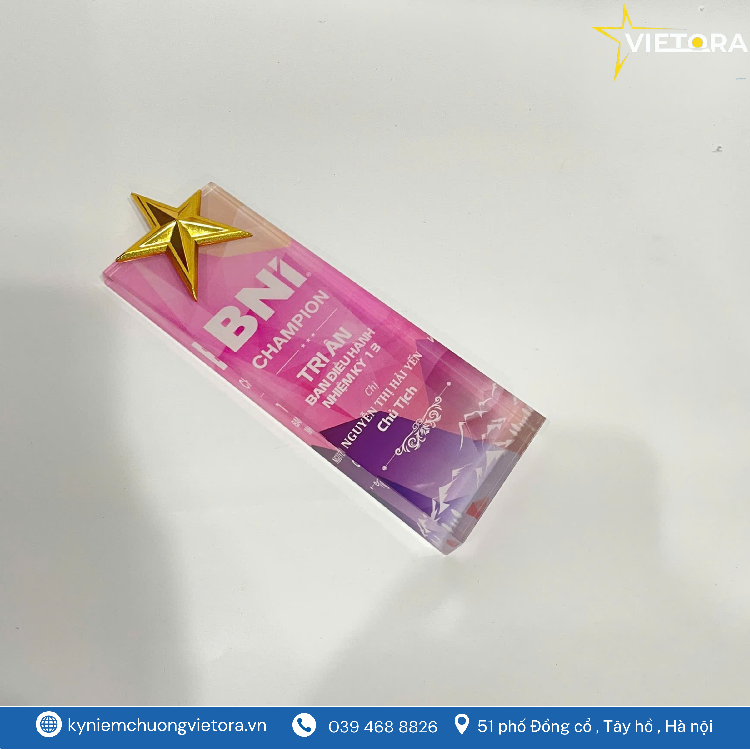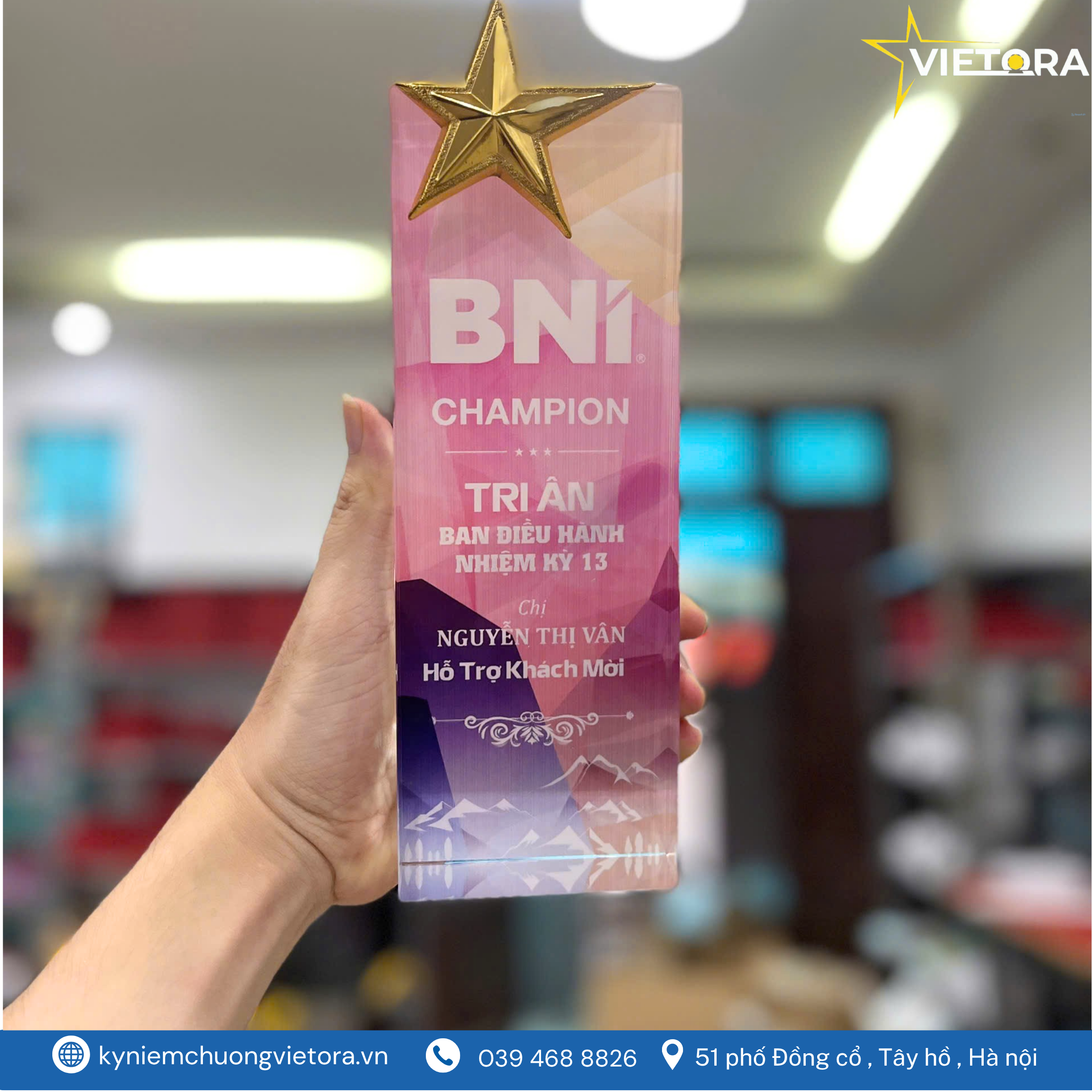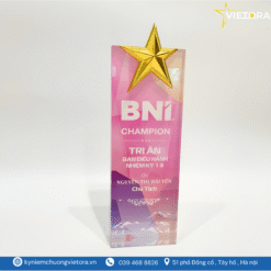 Mẫu cúp pha lê nguyên khối ngôi sao BNI Champion của Vietora là một trong những thiết kế được yêu thích nhất trong các lễ vinh danh doanh nhân và sự kiện BNI.