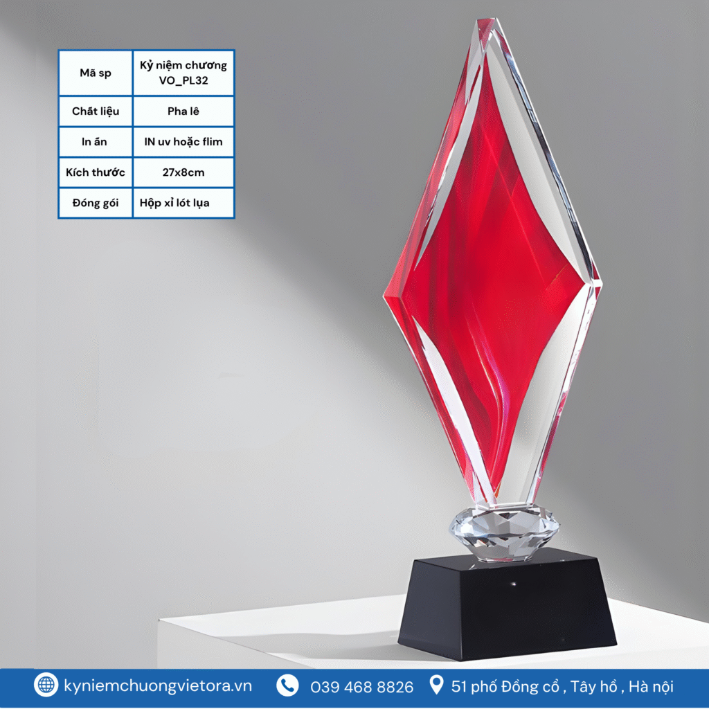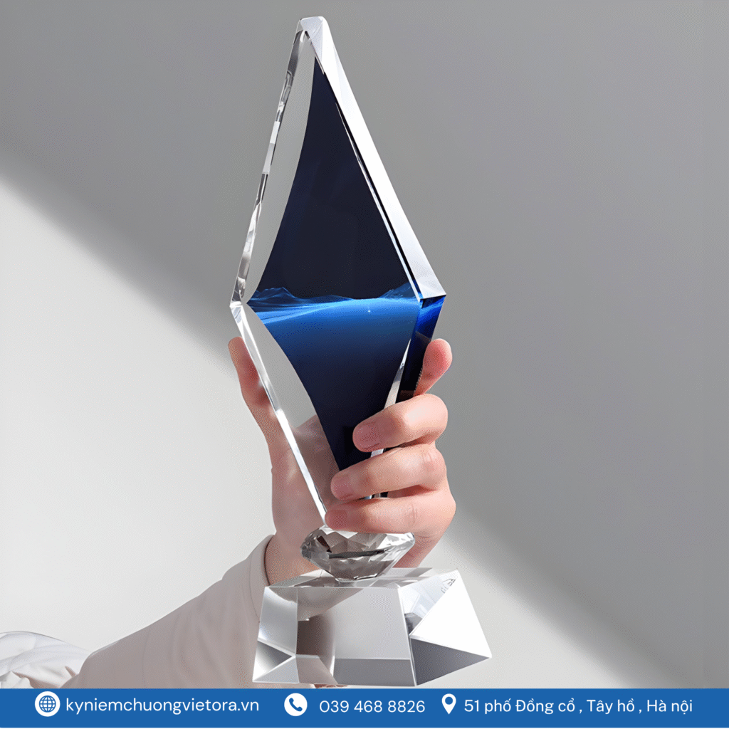 Đặc biệt, kỷ niệm chương pha lê hình kim cương được xem là biểu tượng cho sự bền bỉ, kiên định và tỏa sáng – những phẩm chất đáng quý của người được tôn vinh.