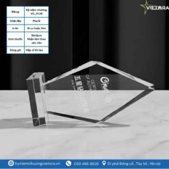 Kỷ niệm chương pha lê VO_PL38 là mẫu kỷ niệm chương cao cấp mang thiết kế hình học hiện đại, đường cắt sắc nét, tạo cảm giác sang trọng và chuyên nghiệp. Sản phẩm được chế tác từ pha lê trong suốt, có độ phản chiếu ánh sáng cao, giúp nội dung khắc/in trên bề mặt trở nên nổi bật và tinh tế.