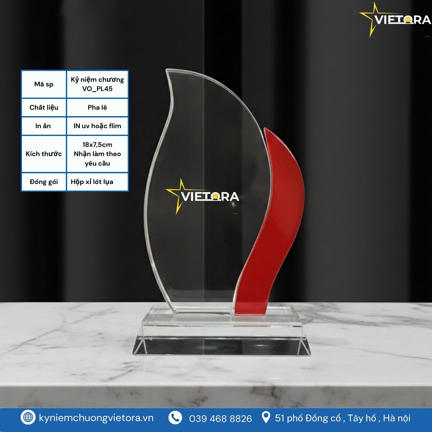 • Kỷ niệm chương pha lê VO_PL45– Biểu tượng vinh danh tinh tế và bền vững